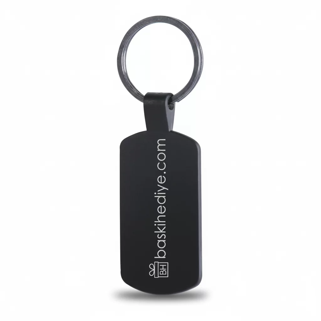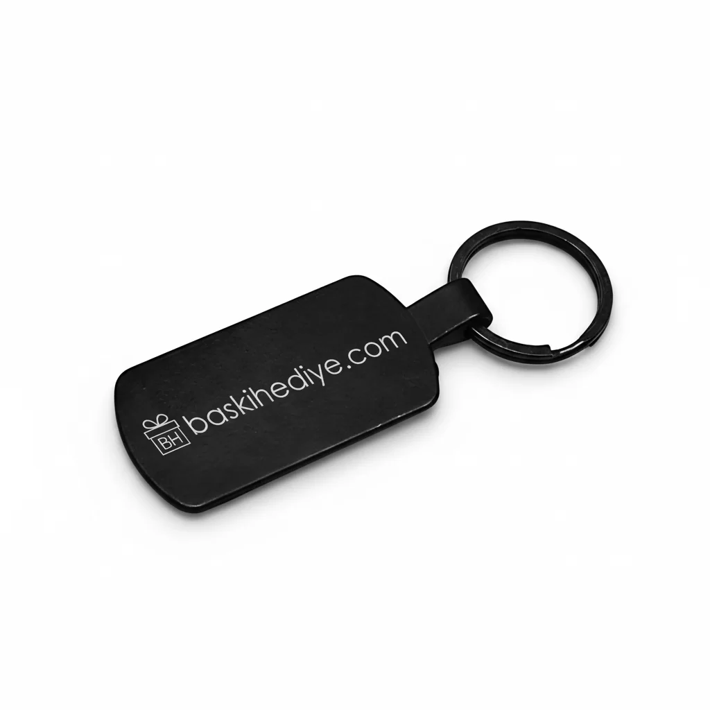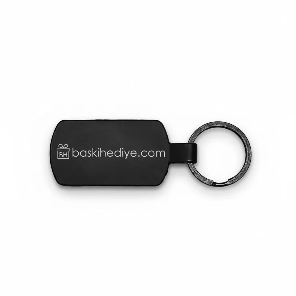 Metal anahtarlıklara lazer baskı (lazer markalama) yapılır. Bu yöntemde, metalin üzerindeki tabaka kazınarak altındaki malzeme ortaya çıkarılır; bu, renkli veya boyalı bir baskı değildir ancak ürünün gövdesine işlenir ve son derece kalıcı olur.