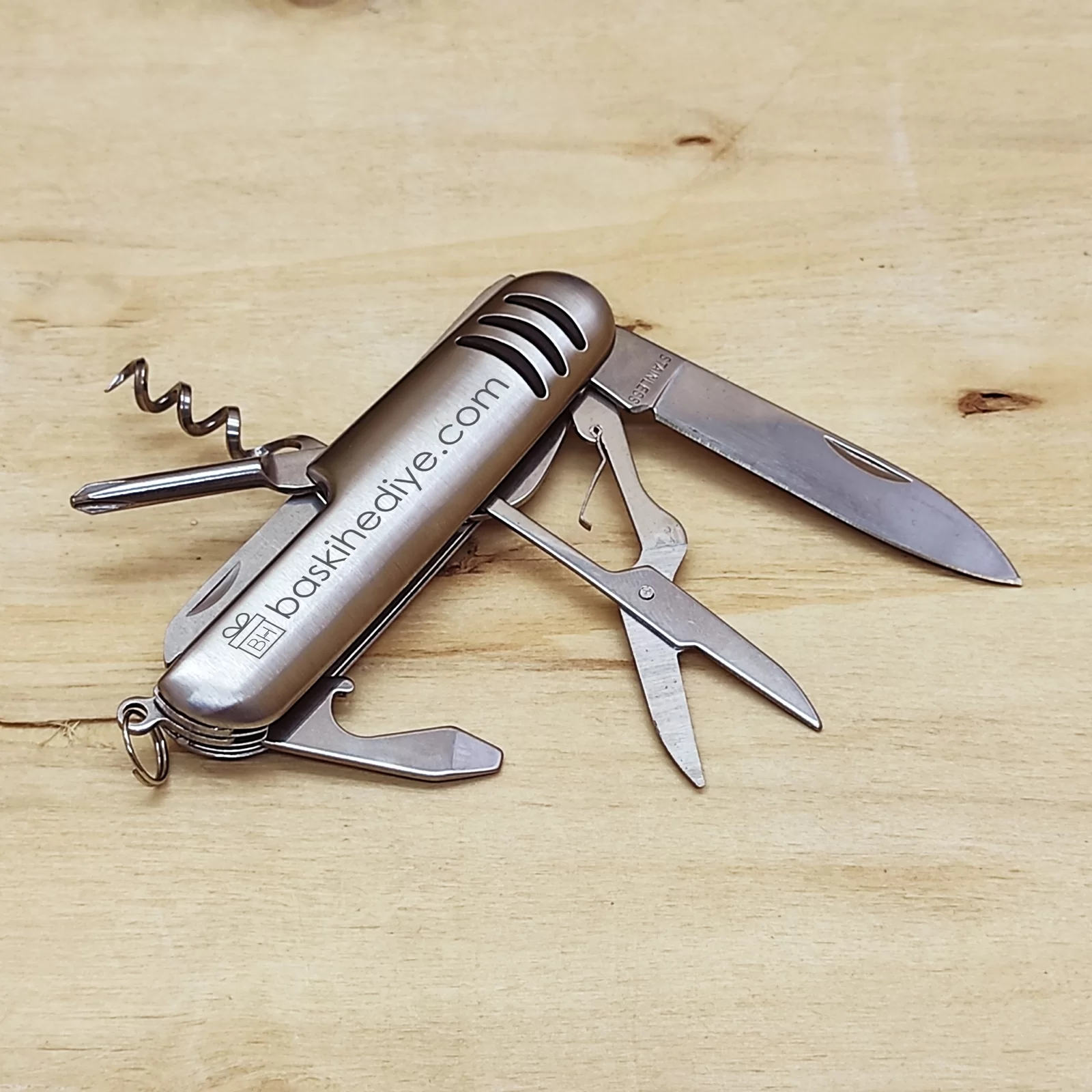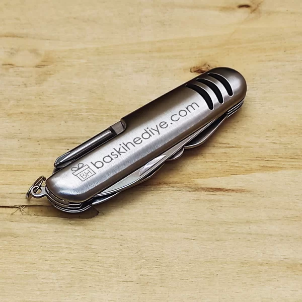 - Ürüne lazer markalama yoluyla baskı yapılabilmektedir. Lazer markalama, ürünün üzerini kazıyarak altındaki gri metal malzemeyi ortaya çıkarmaktadır. Bu ürüne renkli baskı yapılamamaktadır.
