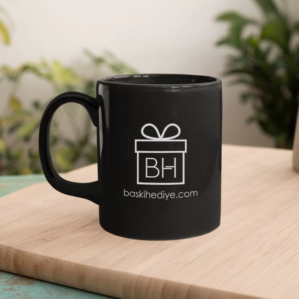 - Baskılı Standart Kupa Bardak (Mug). Tamamı renkli, siyah renk.