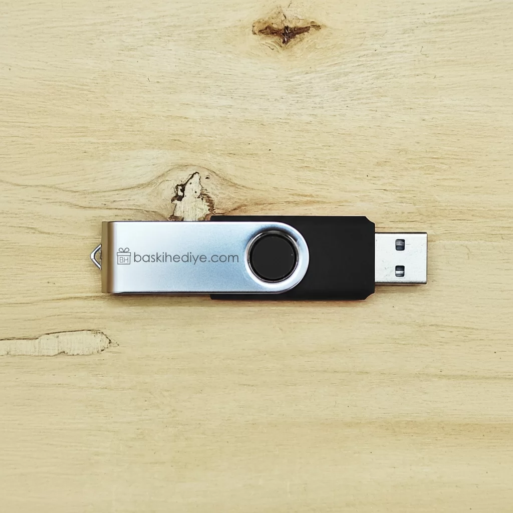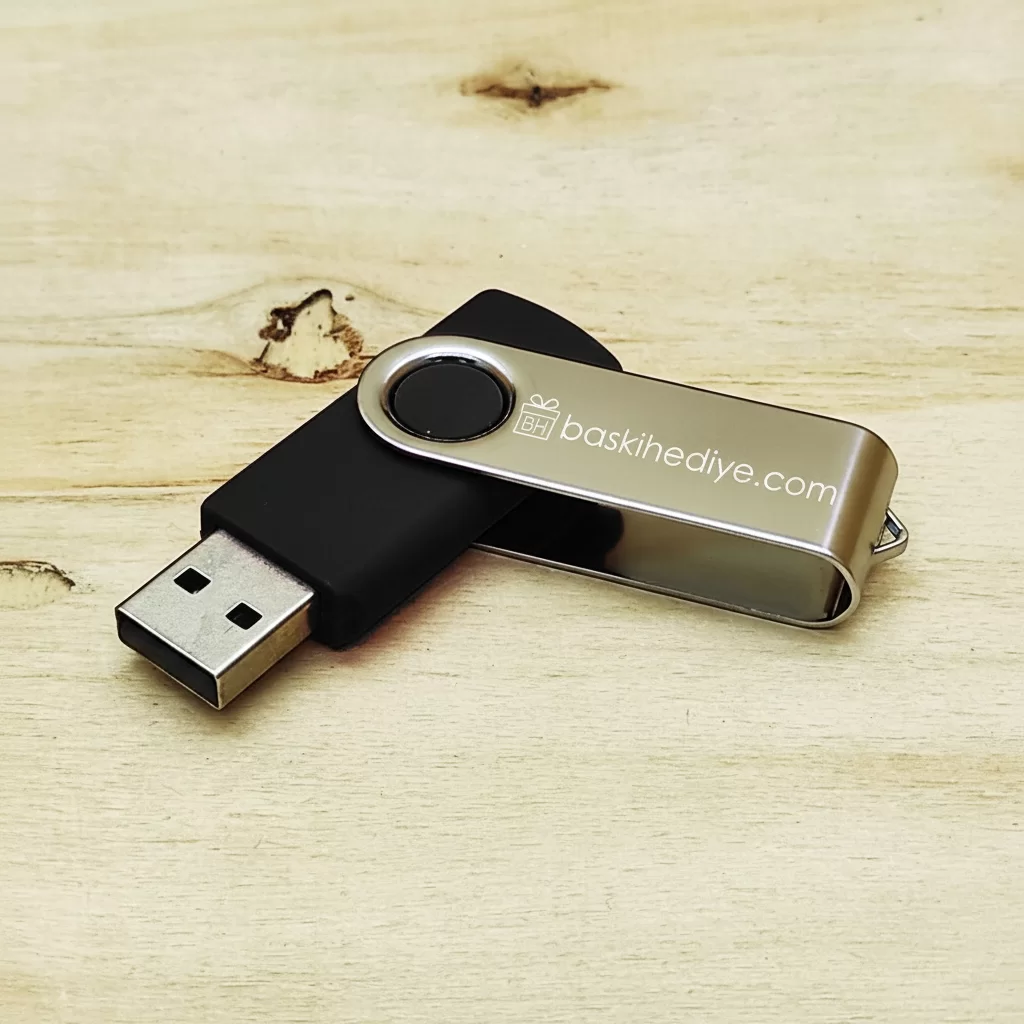 Metal USB flash belleklere lazer baskı (lazer markalama) yöntemiyle baskı yaptırabilirsiniz. Bu yöntem, metalin üzerindeki tabakayı kazıyarak altındaki malzemeyi ortaya çıkarır ve son derece kalıcıdır. Renkli ve boyalı bir baskı değil, doğrudan ürünün gövdesine işlenen dayanıklı bir çözüm sunar.